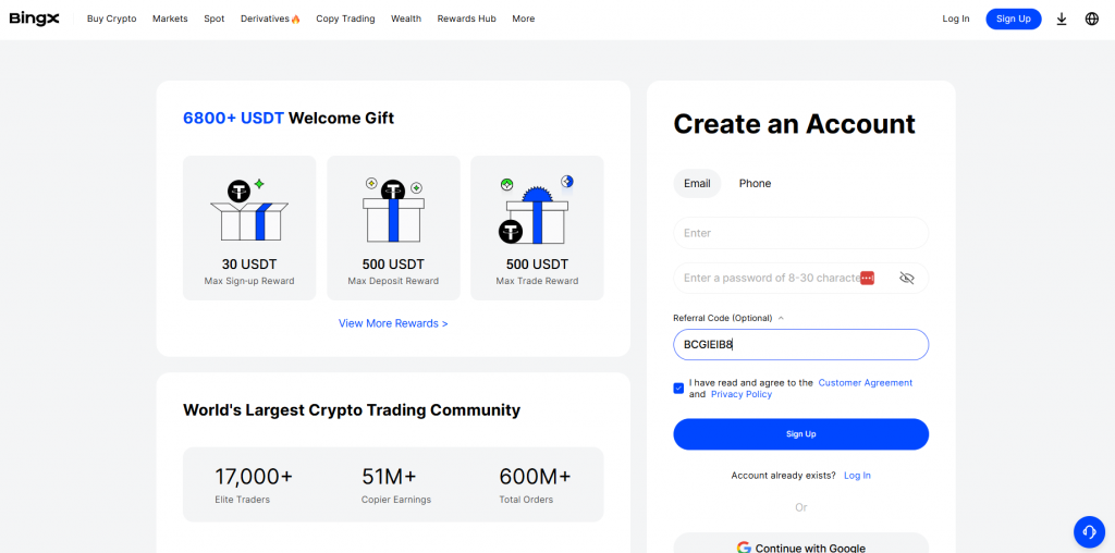 You’ll be directed to the exchange’s official website. Go through the standard registration process. You can register using your email address, phone number, or Google account.
