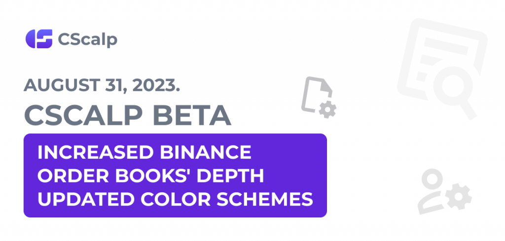On August 31, 2023, we released a CScalp beta featuring the increased order book depth for Binance and dYdX, as well as updates to the color scheme settings.