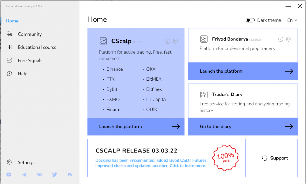 On the 3rd of March, the CScalp trading platform team released the CScalp update. We implemented docking, added Bybit USDT futures, improved charts and updated the launcher. This is a big and important update. Let’s talk about everything more.
