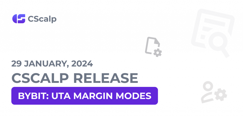 On January 29, 2024, we released the CScalp update where we added margin modes for the Bybit: UTA connection and implemented several bug fixes.