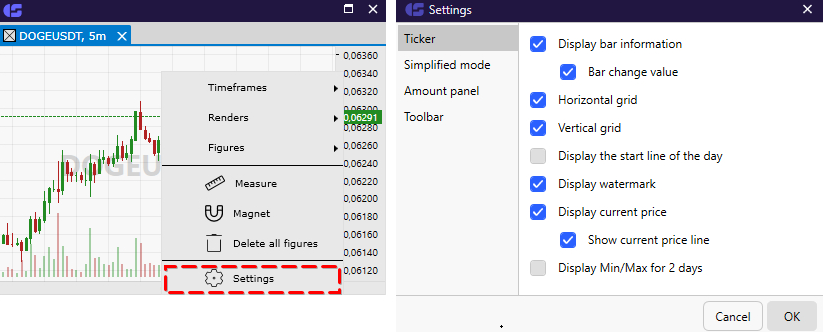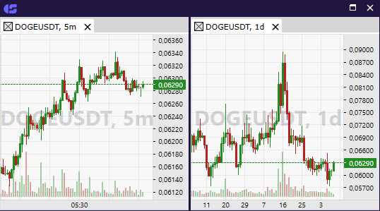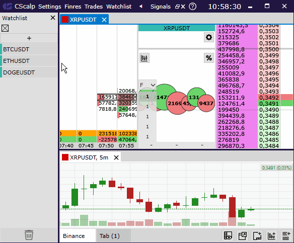 We have added separate chart settings. Now you can set up several charts with different timeframes for each instrument. If you restart CScalp, the settings and timeframes will be saved.