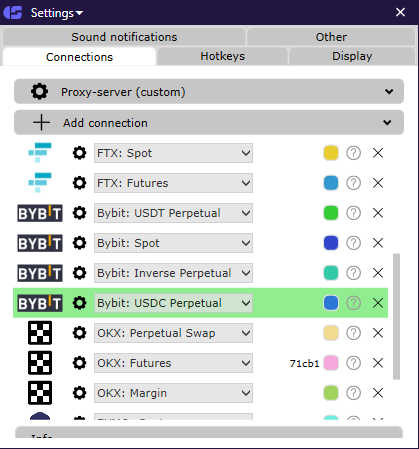 Bybit exchange in CScalp “added” connection to the market of USDC perpetual futures. Connection to USDC futures is implemented in the same way as to other exchange markets. The instructions for connecting to Bybit can be found here.